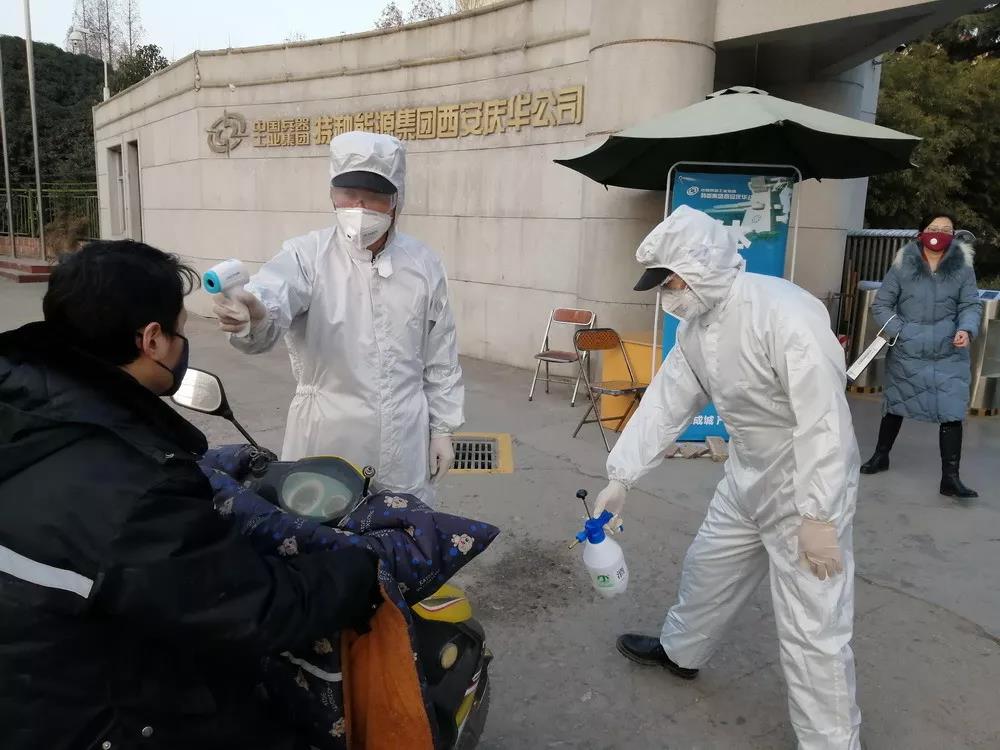 一機(jī)集團(tuán)對出入人員進(jìn)行體溫檢測;對各辦公場所、生產(chǎn)現(xiàn)場均利用消毒液進(jìn)行消毒。同時積極開展測溫儀、體溫計、消毒液、紫外線消毒燈、防護(hù)口罩等物資籌備,做好假期后生產(chǎn)啟動準(zhǔn)備。