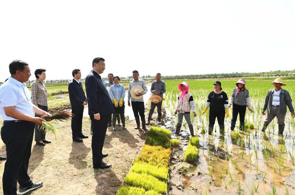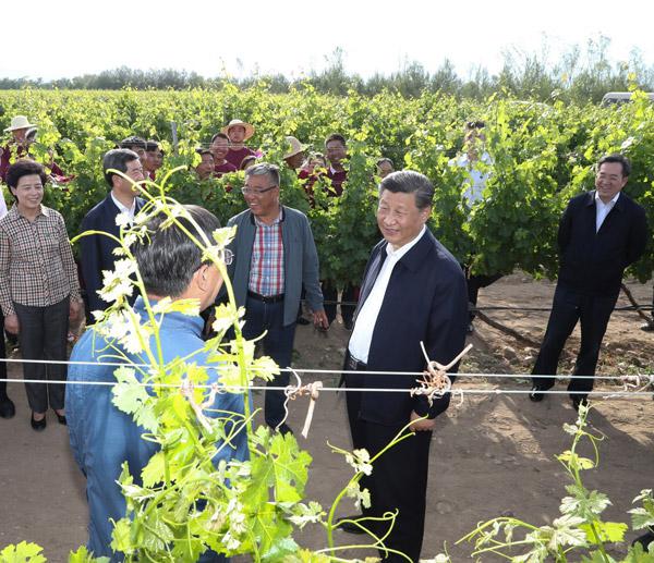 習(xí)近平總書記9日在銀川考察調(diào)研。他先后來到賀蘭縣稻漁空間鄉(xiāng)村生態(tài)觀光園、賀蘭山東麓葡萄種植園,了解當(dāng)?shù)匕l(fā)展特色農(nóng)業(yè)產(chǎn)業(yè)、加強(qiáng)賀蘭山生態(tài)保護(hù)等情況。 (攝影:新華社記者 鞠鵬、謝環(huán)馳、王曄、燕雁)  |