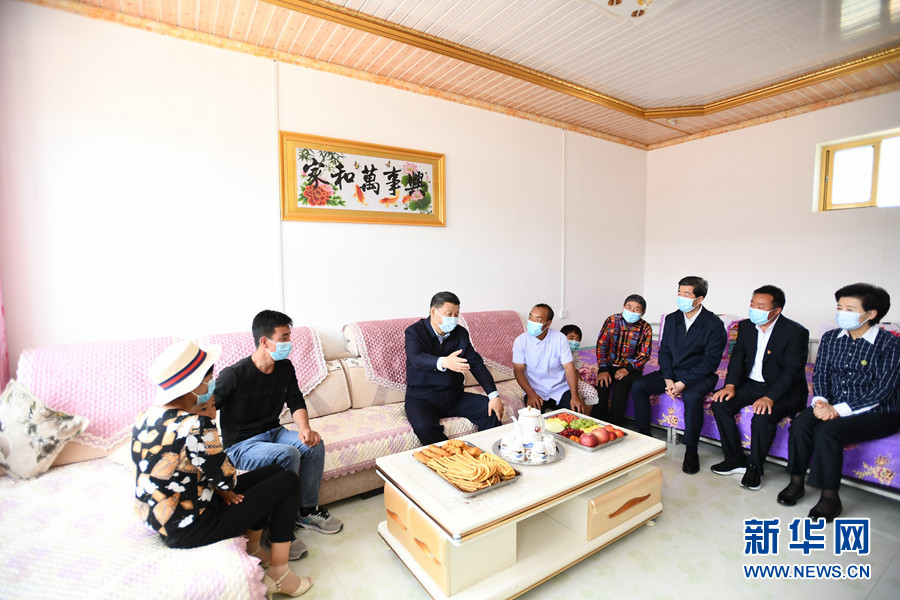 6月8日至10日,中共中央總書(shū)記、國(guó)家主席、中央軍委主席習(xí)近平在寧夏考察。這是6月8日下午,習(xí)近平在吳忠市紅寺堡區(qū)紅寺堡鎮(zhèn)弘德村看望移民搬遷群眾,向村民們揮手致意。 新華社記者 謝環(huán)馳 攝 新華社銀川6月10日電 中共中央總書(shū)記、國(guó)家主席、中央軍委主席習(xí)近平近日在寧夏考察時(shí)強(qiáng)調(diào),要全面落實(shí)黨中央決策部署,堅(jiān)持穩(wěn)中求進(jìn)工作總基調(diào),堅(jiān)持新發(fā)展理念,落實(shí)全國(guó)“兩會(huì)”工作部署,堅(jiān)決打好三大攻堅(jiān)戰(zhàn),扎實(shí)做好“六穩(wěn)”工作,全面落實(shí)“六保”任務(wù),努力克服新冠肺炎疫情帶來(lái)的不利影響,優(yōu)先穩(wěn)就業(yè)保民生,決勝全面建成小康社會(huì),決戰(zhàn)脫貧攻堅(jiān),繼續(xù)建設(shè)經(jīng)濟(jì)繁榮、民族團(tuán)結(jié)、環(huán)境優(yōu)美、人民富裕的美麗新寧夏。 夏日炎炎,塞上江南天高云淡,草木蔥蘢。6月8日至10日,習(xí)近平在寧夏回族自治區(qū)黨委書(shū)記陳潤(rùn)兒、自治區(qū)政府主席咸輝陪同下,先后來(lái)到吳忠、銀川等地,深入農(nóng)村、社區(qū)、防洪工程、農(nóng)業(yè)產(chǎn)業(yè)園區(qū)等,就統(tǒng)籌推進(jìn)常態(tài)化疫情防控和經(jīng)濟(jì)社會(huì)發(fā)展工作、鞏固脫貧攻堅(jiān)成果、加強(qiáng)生態(tài)環(huán)境保護(hù)、推動(dòng)民族團(tuán)結(jié)進(jìn)步進(jìn)行調(diào)研。 6月8日至10日,中共中央總書(shū)記、國(guó)家主席、中央軍委主席習(xí)近平在寧夏考察。這是6月8日下午,習(xí)近平在吳忠市紅寺堡區(qū)紅寺堡鎮(zhèn)弘德村扶貧車(chē)間,同正在加工制作紙箱的村民交流。 新華社記者 鞠鵬 攝 吳忠市紅寺堡區(qū)紅寺堡鎮(zhèn)弘德村是生態(tài)移民村,有建檔立卡貧困戶(hù)1036戶(hù)4497人,目前還有20戶(hù)50人未脫貧。8日下午,習(xí)近平首先來(lái)到弘德村考察脫貧攻堅(jiān)工作。在村扶貧車(chē)間院內(nèi),他聽(tīng)取了寧夏以及弘德村脫貧攻堅(jiān)情況介紹。走進(jìn)扶貧車(chē)間,習(xí)近平同正在加工制作紙箱的村民們親切交流。鄉(xiāng)親們告訴總書(shū)記,村里引入企業(yè)從事紙箱包裝業(yè)務(wù),解決了一百多人就業(yè)問(wèn)題。習(xí)近平表示肯定。他指出,興辦扶貧車(chē)間目的是扶貧,要堅(jiān)持扶貧性質(zhì),向困難群眾傾斜,多招收困難群眾就業(yè)。鄉(xiāng)親們?cè)诩议T(mén)口就業(yè),雖然收入不比進(jìn)城務(wù)工高,但省去了住宿、伙食、交通等費(fèi)用,還能照顧家庭,一舉多得。企業(yè)參與興辦扶貧車(chē)間,體現(xiàn)了先富帶后富,很有意義。   6月8日至10日,中共中央總書(shū)記、國(guó)家主席、中央軍委主席習(xí)近平在寧夏考察。這是6月8日下午,習(xí)近平在吳忠市紅寺堡區(qū)紅寺堡鎮(zhèn)弘德村察看回族村民劉克瑞家院落。 新華社記者 謝環(huán)馳 攝 隨后,習(xí)近平步行察看村容村貌。在回族村民劉克瑞家,他仔細(xì)看院落、客廳、臥室、廚房、牛棚,詳細(xì)了解家庭就業(yè)、收入、看病、社保等情況。劉克瑞告訴總書(shū)記,家里的耕地流轉(zhuǎn)了,還養(yǎng)了3頭肉牛,兒子兒媳在附近紡織廠打工,2017年全家脫貧,生活越來(lái)越好,鄉(xiāng)親們打心底里感到黨的政策好,真切感受到共產(chǎn)黨親。習(xí)近平詢(xún)問(wèn)劉克瑞老兩口還有什么困難、對(duì)今后的日子有什么打算。習(xí)近平強(qiáng)調(diào),鄉(xiāng)親們搬遷后,更好生活還在后頭。希望鄉(xiāng)親們百尺竿頭、更進(jìn)一步,發(fā)揮自身積極性、主動(dòng)性、創(chuàng)造性,用自己的雙手創(chuàng)造更加美好的新生活。 6月8日至10日,中共中央總書(shū)記、國(guó)家主席、中央軍委主席習(xí)近平在寧夏考察。這是6月8日下午,習(xí)近平在吳忠市紅寺堡區(qū)紅寺堡鎮(zhèn)弘德村,同回族村民劉克瑞一家親切交流。 新華社記者 謝環(huán)馳 攝 離開(kāi)村子時(shí),村民們紛紛趕到村口,歡送總書(shū)記。習(xí)近平向大家揮手致意,祝愿鄉(xiāng)親們生活幸福。 6月8日至10日,中共中央總書(shū)記、國(guó)家主席、中央軍委主席習(xí)近平在寧夏考察。這是6月8日下午,習(xí)近平在黃河吳忠濱河大道古城灣砌護(hù)段,察看黃河生態(tài)治理保護(hù)狀況。 新華社記者 鞠鵬 攝 習(xí)近平高度重視黃河流域生態(tài)保護(hù)和高質(zhì)量發(fā)展。他來(lái)到黃河吳忠濱河大道古城灣砌護(hù)段,沿岸邊步道,察看黃河生態(tài)治理保護(hù)狀況,聽(tīng)取黃河寧夏段生態(tài)保護(hù)治理和水利工程建設(shè)情況匯報(bào)。習(xí)近平指出,黃河是中華民族的母親河,是中華民族和中華文明賴(lài)以生存發(fā)展的寶貴資源。自古以來(lái),黃河水滋養(yǎng)著寧夏這片美麗富饒的土地,今天仍在造福寧夏各族人民。寧夏要有大局觀念和責(zé)任擔(dān)當(dāng),更加珍惜黃河,精心呵護(hù)黃河,堅(jiān)持綜合治理、系統(tǒng)治理、源頭治理,明確黃河保護(hù)紅線底線,統(tǒng)籌推進(jìn)堤防建設(shè)、河道整治、灘區(qū)治理、生態(tài)修復(fù)等重大工程,守好改善生態(tài)環(huán)境生命線。 6月8日至10日,中共中央總書(shū)記、國(guó)家主席、中央軍委主席習(xí)近平在寧夏考察。這