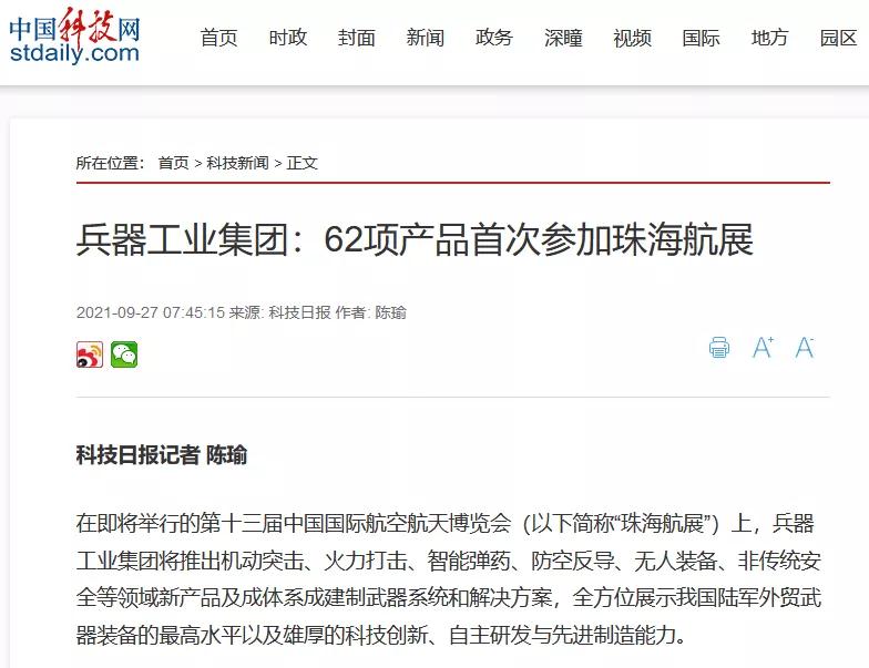 兵器工業(yè)集團(tuán)參展第十三屆中國(guó)航展受到社會(huì)廣泛關(guān)注 |