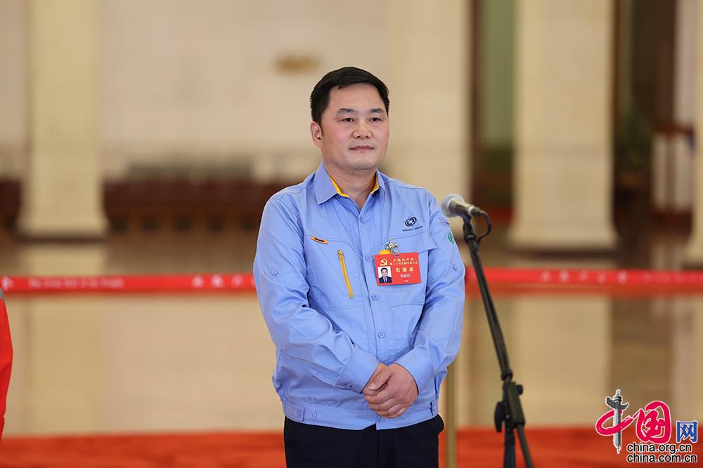 10月22日,二十大“黨代表通道”第二場(chǎng)采訪活動(dòng)在人民大會(huì)堂舉辦。圖為中國兵器西北工業(yè)集團(tuán)研究院試制分廠鉗工高級(jí)技師張新停。中國網(wǎng)記者 董寧 攝