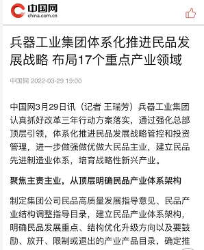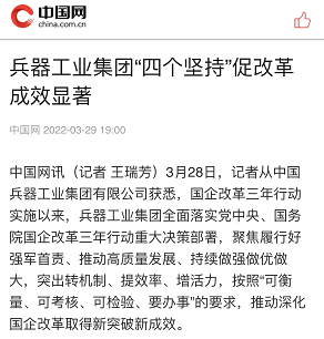 兵器工業(yè)集團(tuán)國(guó)企改革三年行動(dòng)工作成效引發(fā)廣泛關(guān)注丨國(guó)企改革看兵器 |