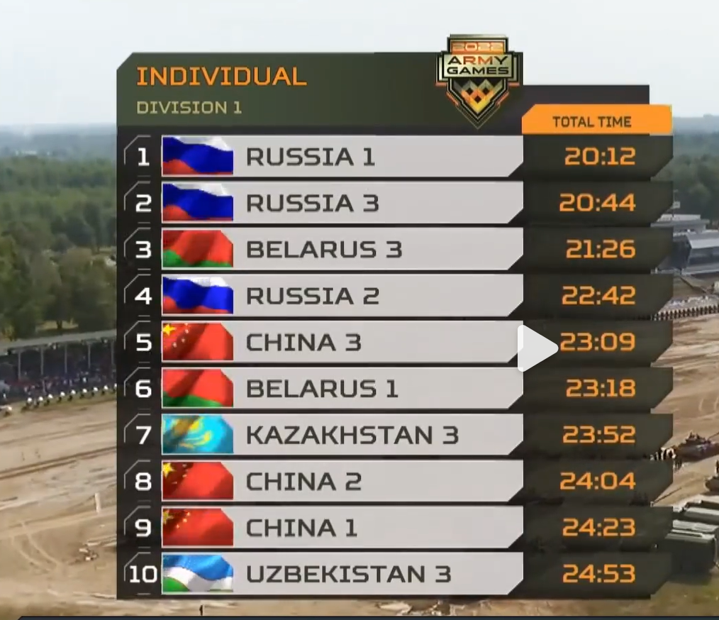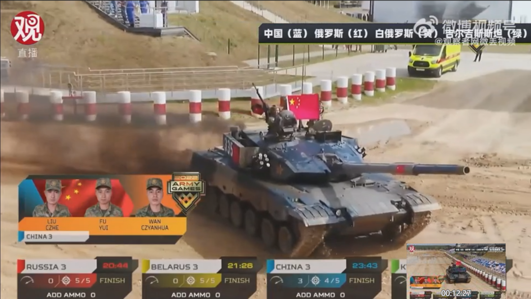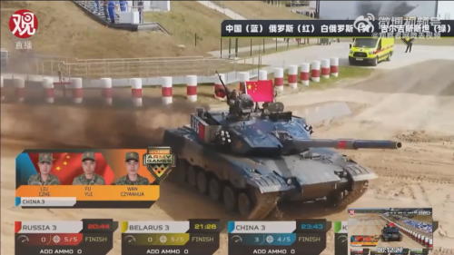 96B坦克助力中國(guó)隊(duì)挺進(jìn)“坦克兩項(xiàng)”半決賽 當(dāng)?shù)貢r(shí)間8月21日 “國(guó)際軍事比賽-2022” “坦克兩項(xiàng)”單車(chē)賽第三輪的比拼 在俄羅斯阿拉比諾拉開(kāi)帷幕 中國(guó)參賽隊(duì)駕駛96B坦克 發(fā)揮出色 在單車(chē)賽中 中國(guó)與白俄羅斯、俄羅斯、吉爾吉斯斯坦 分在同一組進(jìn)行比拼 比賽中 96B坦克全程發(fā)揮穩(wěn)定 一路疾馳通過(guò) 涉水場(chǎng)、土嶺、車(chē)轍橋等各類(lèi)障礙 順利完成比賽 高射機(jī)槍命中 本屆“國(guó)際軍事比賽”“坦克兩項(xiàng)”項(xiàng)目 共有21個(gè)國(guó)家和地區(qū)的隊(duì)伍參加 中國(guó)參賽隊(duì) 335車(chē)組、334車(chē)組、336車(chē)組 分別取得第五、第八、第九名 以單車(chē)賽總評(píng)第二的成績(jī) 成功晉級(jí)半決賽