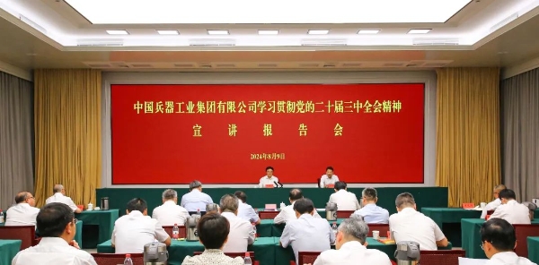 8月9日,中國(guó)兵器工業(yè)集團(tuán)有限公司黨組舉辦學(xué)習(xí)貫徹黨的二十屆三中全會(huì)精神宣講報(bào)告會(huì),第二十屆中央委員、中央黨史和文獻(xiàn)研究院院長(zhǎng)曲青山作宣講報(bào)告,集團(tuán)公司黨組書(shū)記、董事長(zhǎng)程福波主持報(bào)告會(huì)。