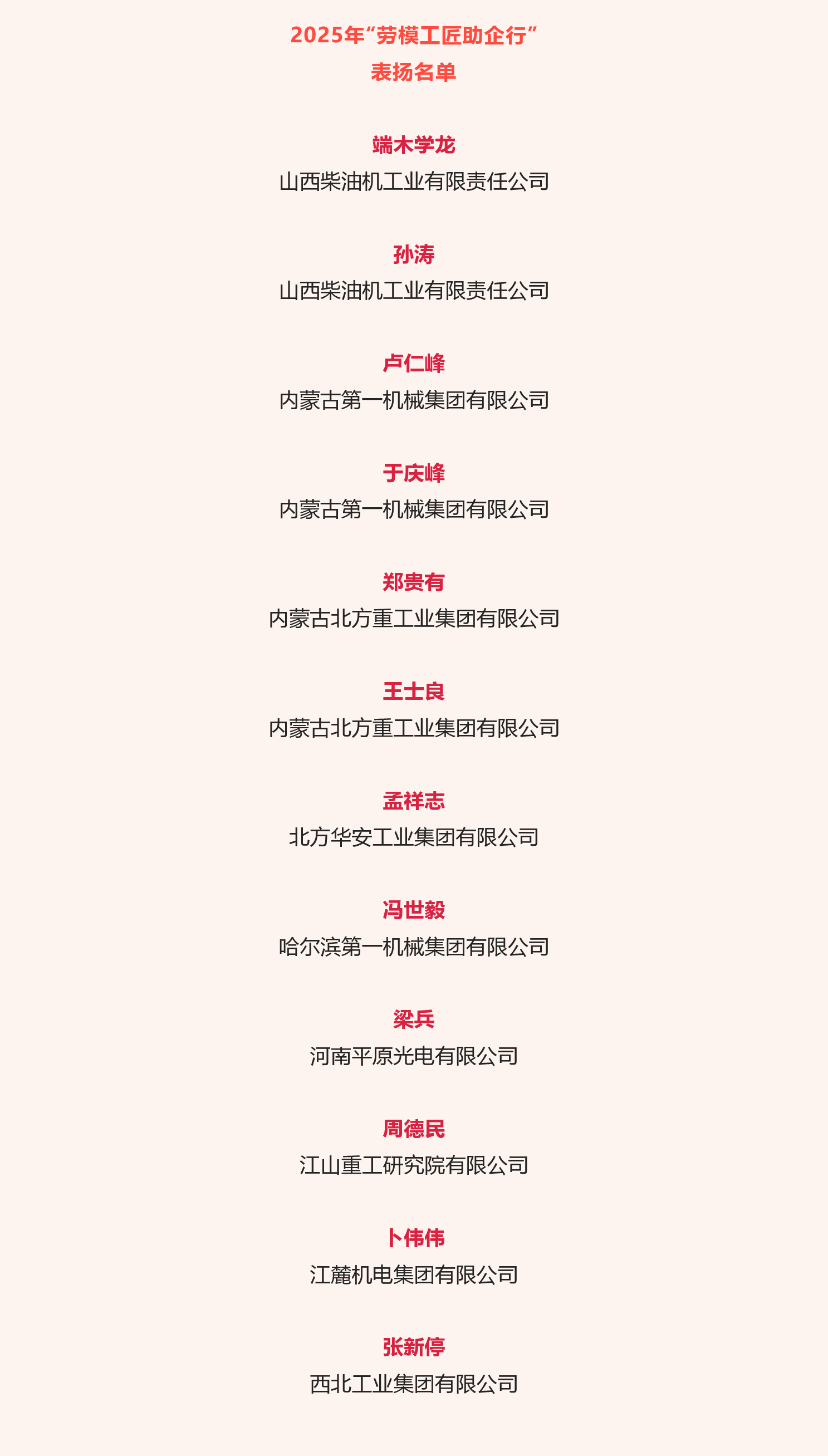 兵器工業(yè)集團(tuán)12名勞模工匠入選“勞模工匠助企行”表?yè)P(yáng)名單 |