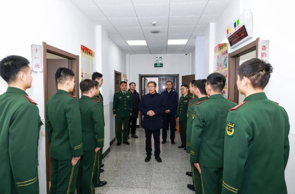 周治平走訪了作戰(zhàn)勤務值班室、營房等,詳細了解春節(jié)期間勤務安排、生活保障和防寒保暖措施等情況,對官兵的堅守、付出和奉獻予以高度贊揚。周治平表示,執(zhí)勤崗位責任重大、工作辛苦,執(zhí)勤武警官兵始終牢記職責、忠誠履職、紀律嚴明、作風優(yōu)良,以實際行動踐行了軍民魚水情、軍地一家親,贏得了兵器干部職工的一致好評,為兵器工業(yè)集團改革發(fā)展穩(wěn)定工作作出了重要貢獻。集團公司有關(guān)部門要強化服務保障、筑牢軍地情誼,用心用情用力為官兵創(chuàng)造良好的學習生活訓練條件。 執(zhí)勤武警負責人衷心感謝集團公司一直以來的關(guān)心支持,表示廣大官兵將認真踐行武警部隊優(yōu)良傳統(tǒng),聽黨指揮、不辱使命、刻苦訓練、增強本領(lǐng),以更加飽滿的熱情投入到新的一年執(zhí)勤工作中,為維護兵器工業(yè)保衛(wèi)安全穩(wěn)定貢獻更大力量。(綜合管理部)